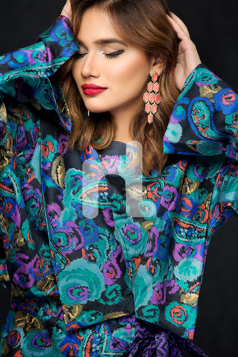 Digital printed Sateen fabric adding chic look with the mixture of royal blue palette. Evening look is incomplete in winter without Nishat Linen winter collection 2017.